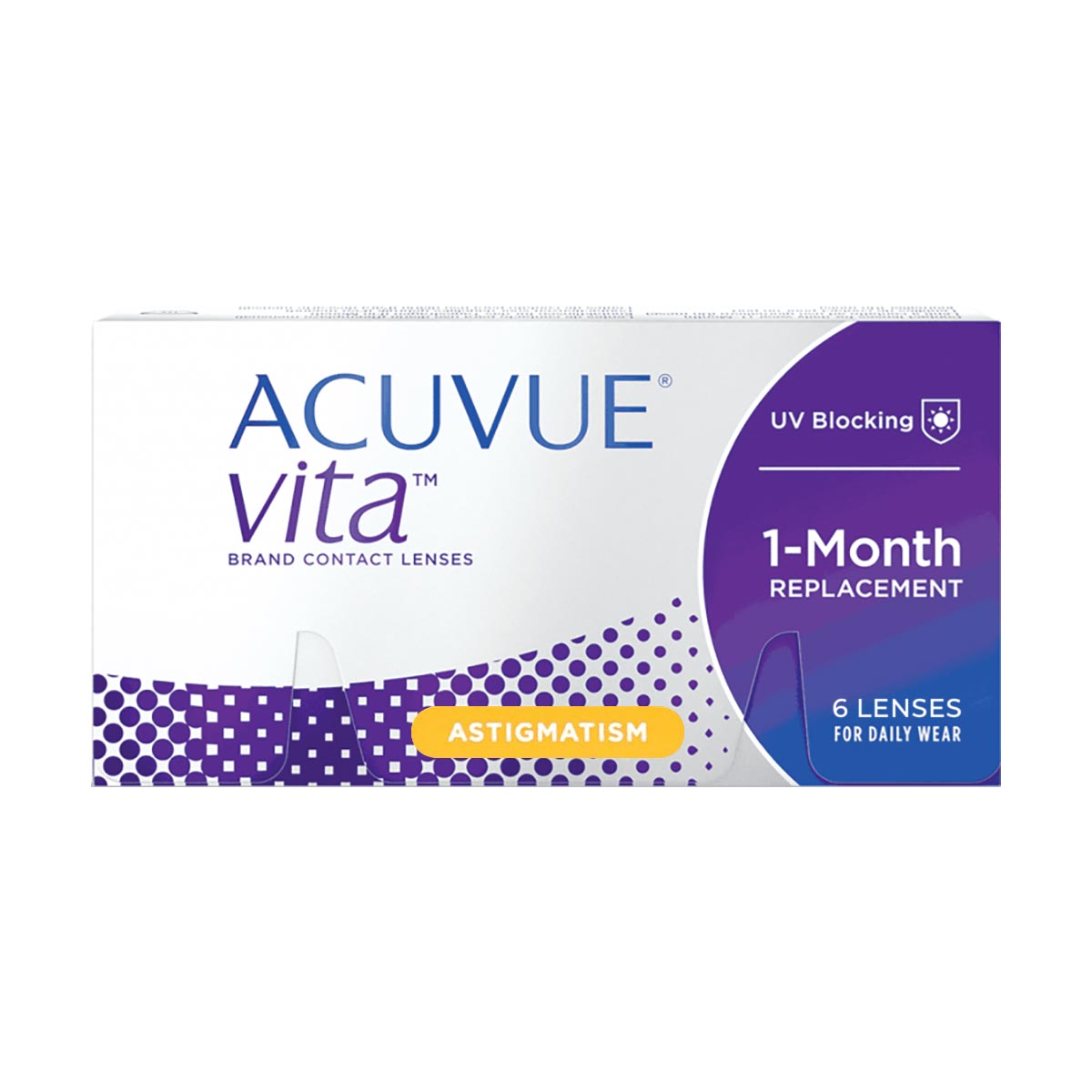 Acuvue Vita for Astigmatism (6 lentes)" Acuvue Vita com tecnologia HydraMax é a nova fórmula de silicone-hidrogel! A tecnologia HydraMax da lente Acuvue Vita ajuda a maximizar a hidratação na lente de contacto graças à integração da máxima quantidade de agente hidratante na lente. Este desenho inspirado no olho humano ajuda a: Maximizar e manter a hidratação da lente de contacto durante todo o mês. Melhorar o conforto através do desenho Infinity Edge™, um perfil estreito, suave e com mínima altura. Oferecer proteção UV durante o bloqueio de aproximadamente el 93,4% dos raios UVA e ol 99,8% dos raios UVB.