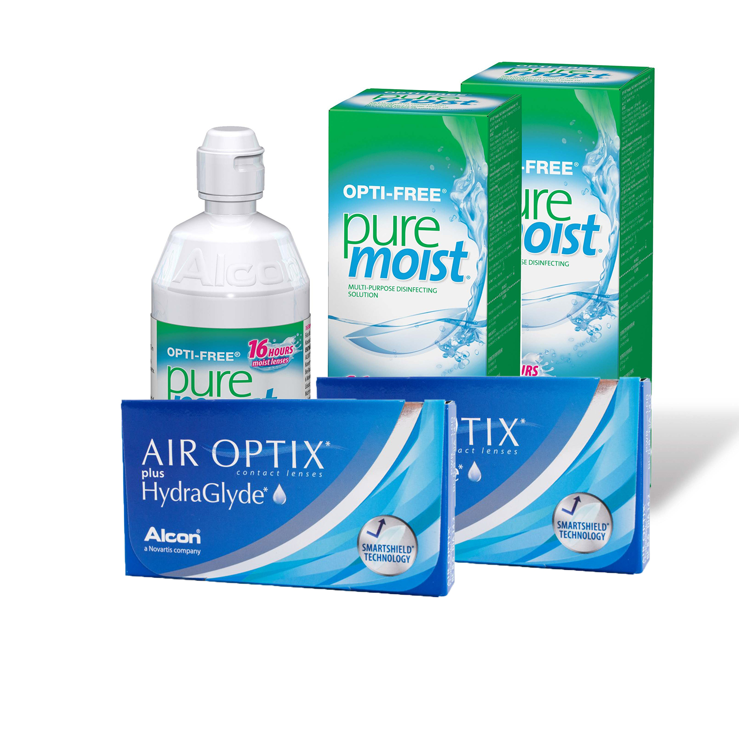 Air Optix HydraGlyde (Cx 6) x2 + Opti-Free Pure Moist 300ml x2 + 60ml
